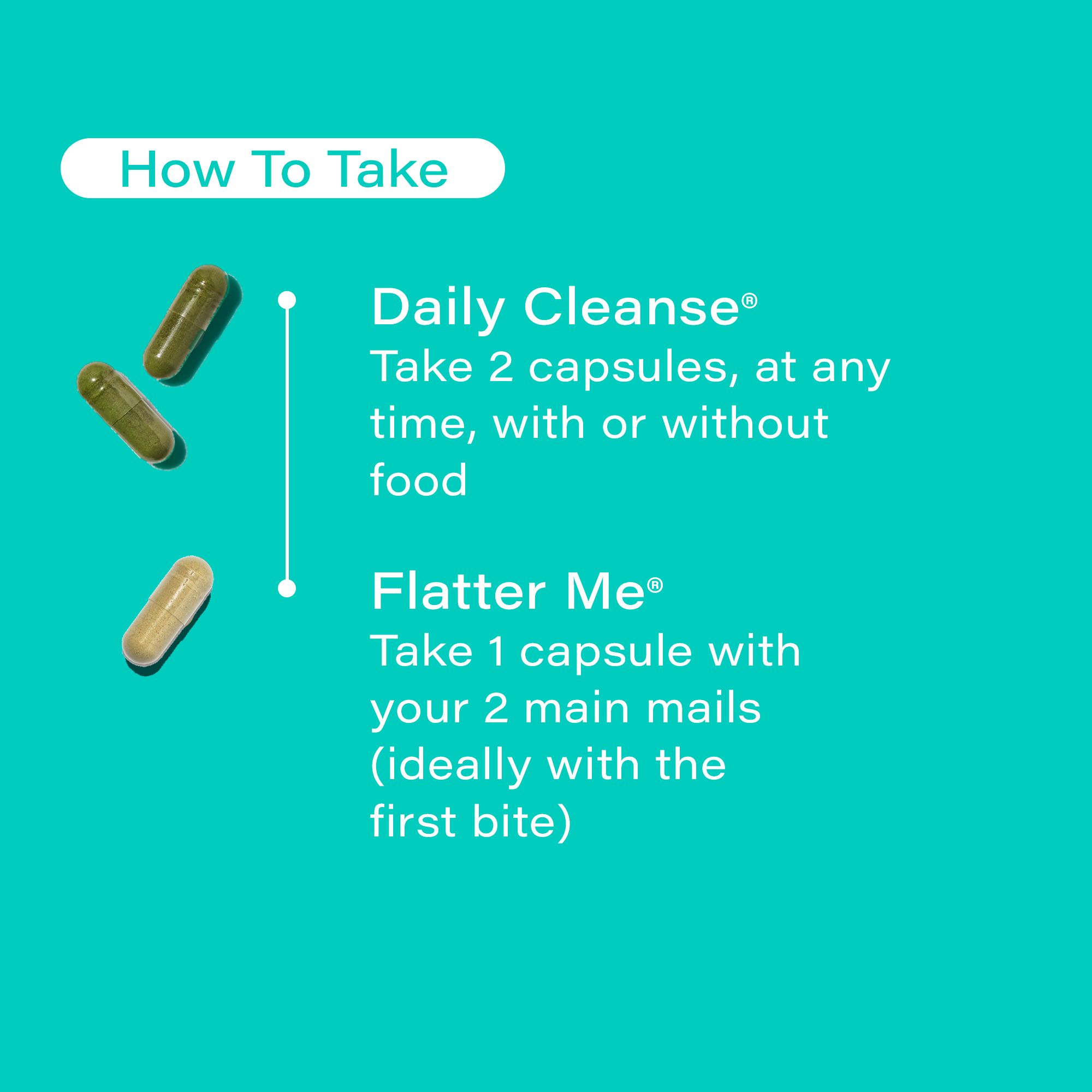 - Step 2: Flatter Me® with 18 digestive enzymes breaks down food to improve digestion + reduce bloating