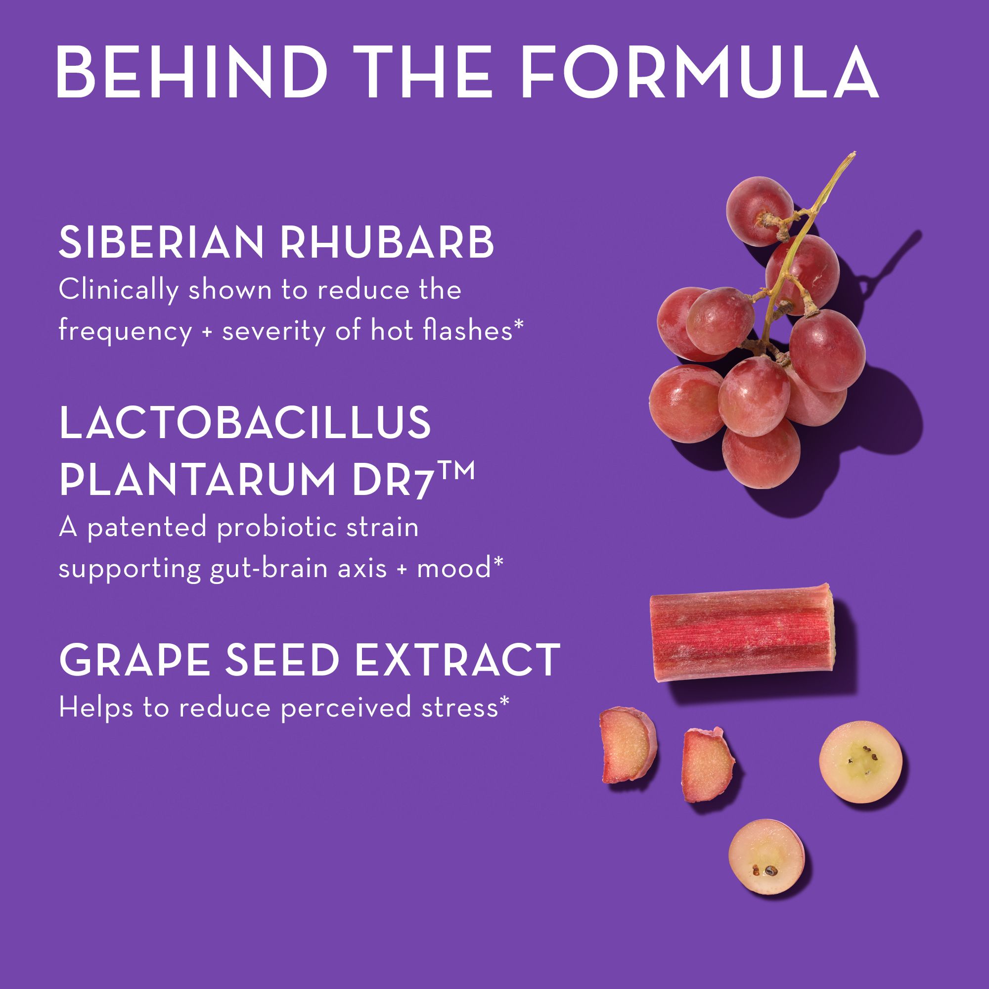 An estrogen-free clinically studied probiotic formula that targets 11 symptoms of perimenopause and menopause.