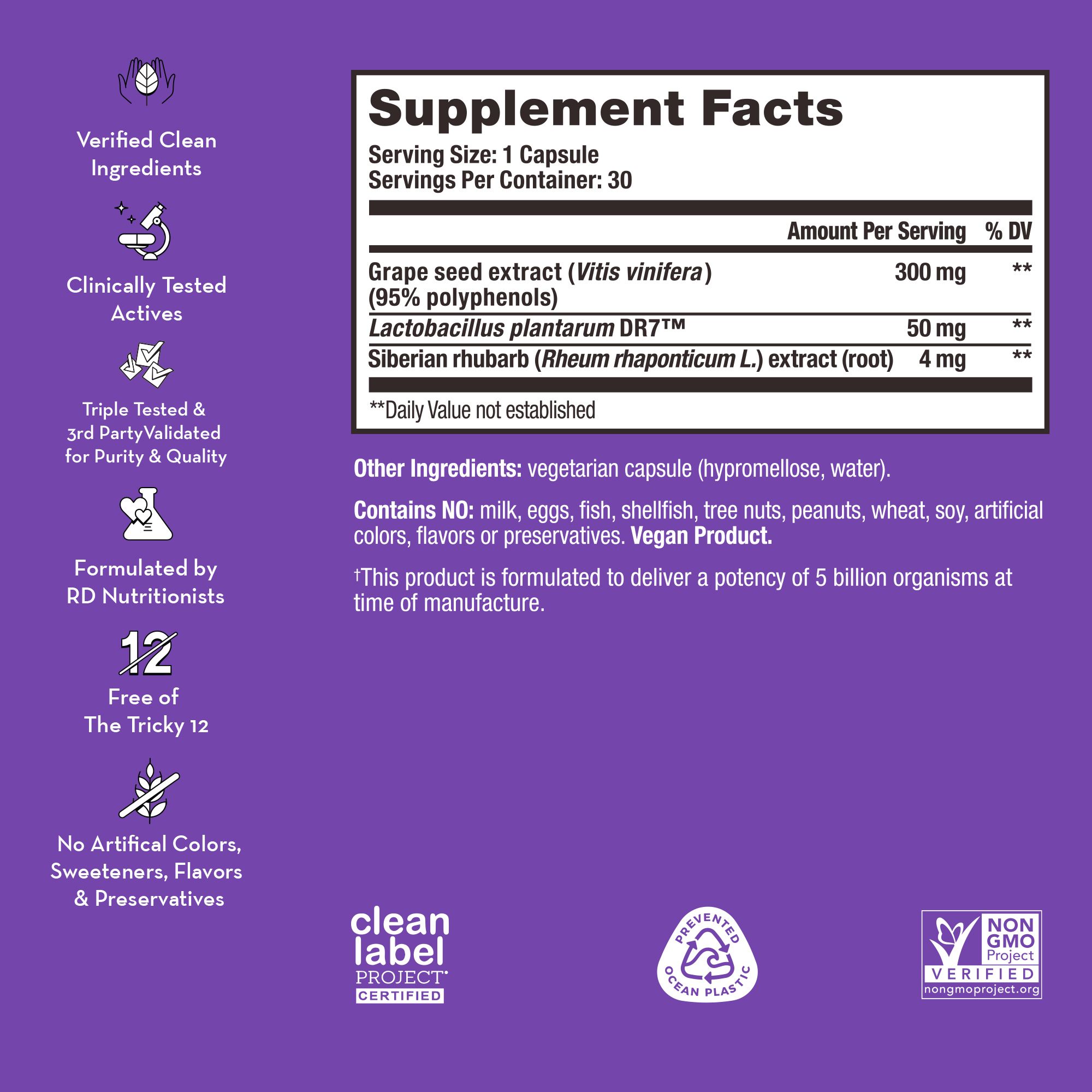 High in proanthocyanidins, which help reduce perceived stress and support improvement of symptoms related to menopause.