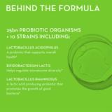 25 Billion CFU potent probiotic blend with 10 strains to support a balanced gut microbiome and healthy digestion.
