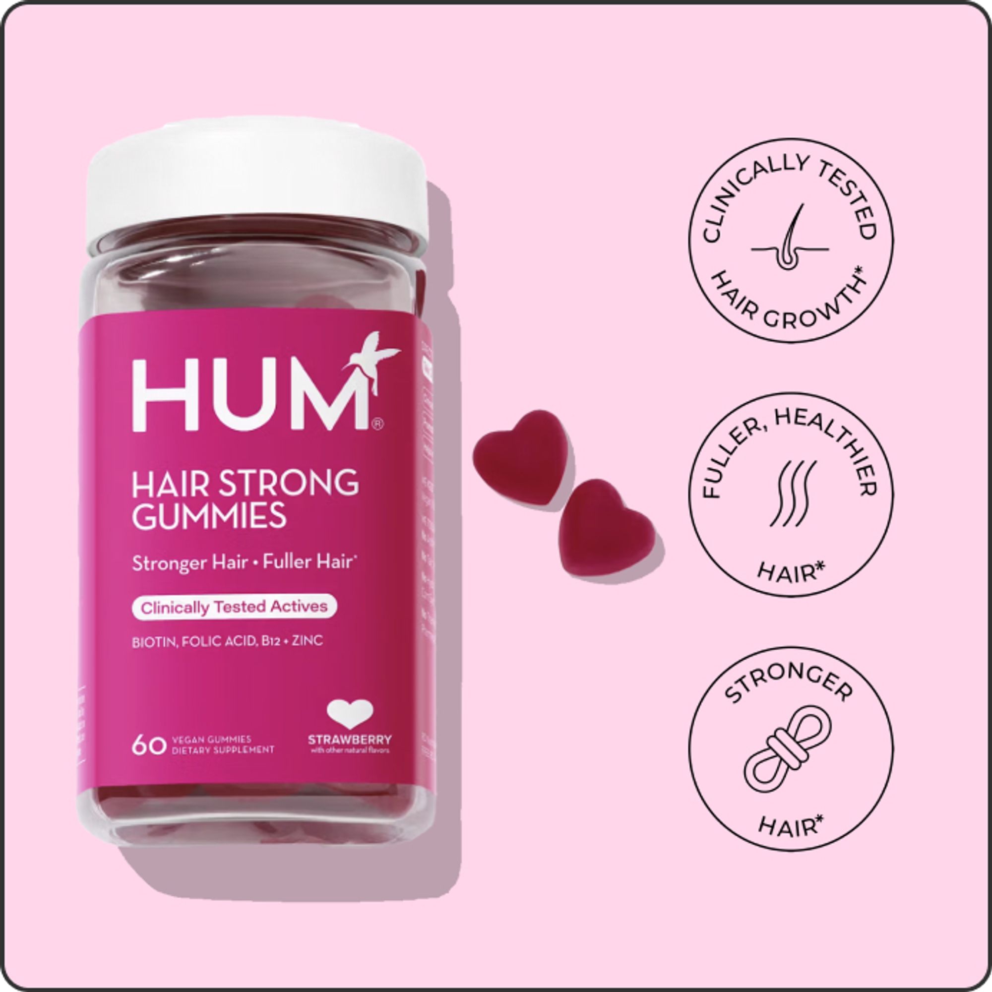 Clinically proven formula for improved hair growth with biotin, folic acid, B12, and zinc to support fuller, stronger hair.*