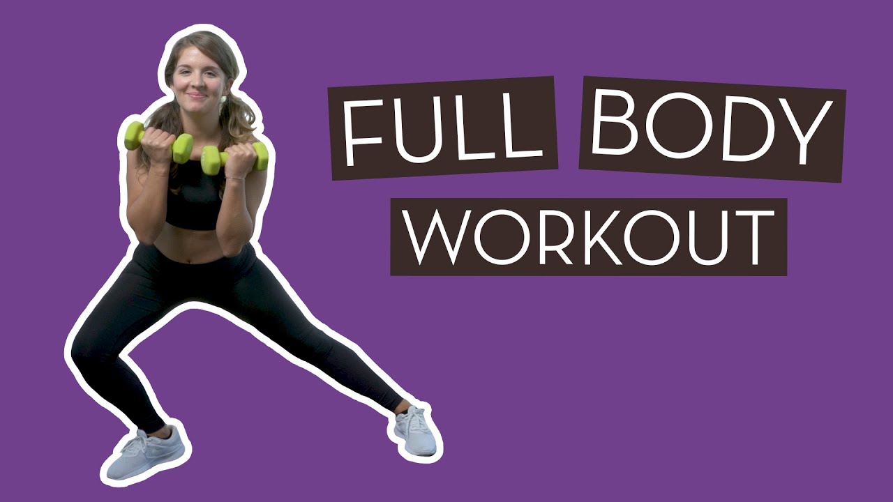 Read on to get all the details of each move and be sure to watch the video above to see a demo of these moves in action. All you need for this home full-body workout is a little bit of space, a set of light or medium dumbells (3, 5, or 7 pounds will work depending on your level), some good tunes, and a towel for the sweat. (Because yes, there will be lots of sweat.) No dumbbells? No problem! All of the exercises in this workout can be done without weights.