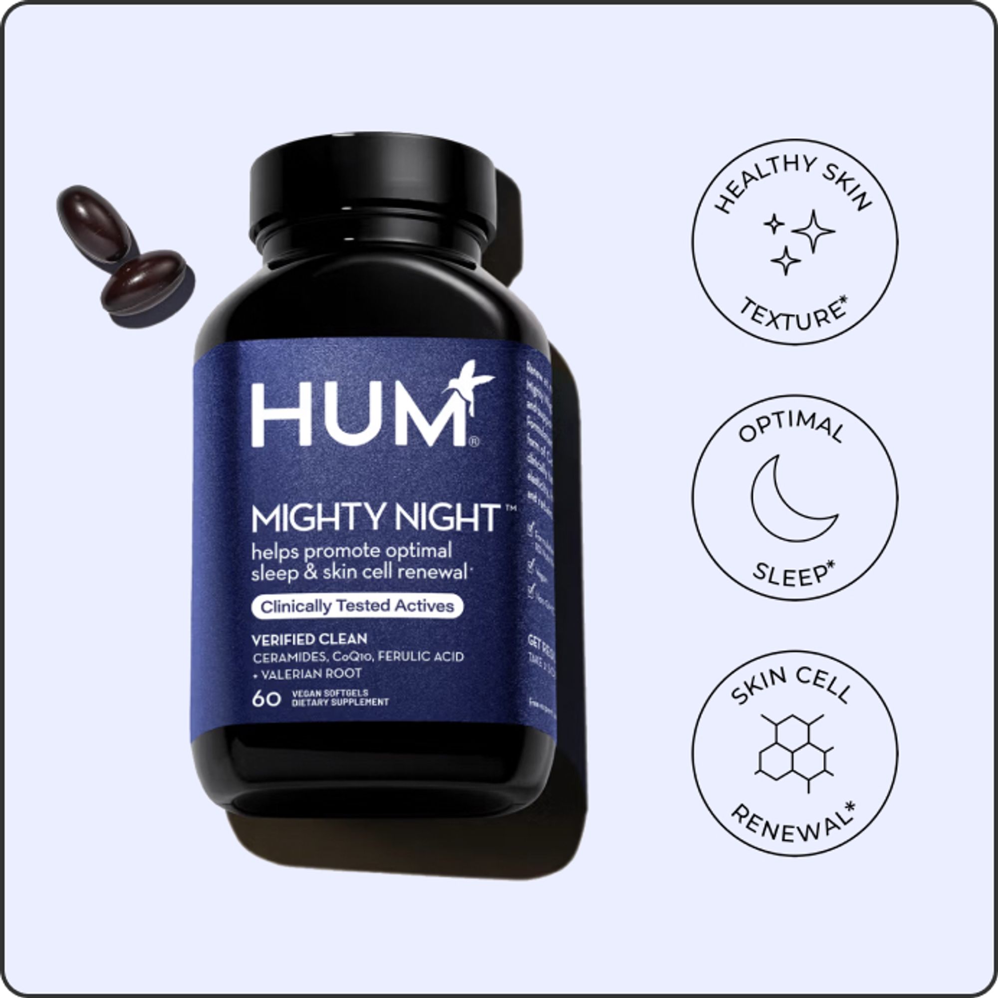 Clinically-tested nutrients to promote skin cell turnover, healthy-looking skin and optimal sleep.