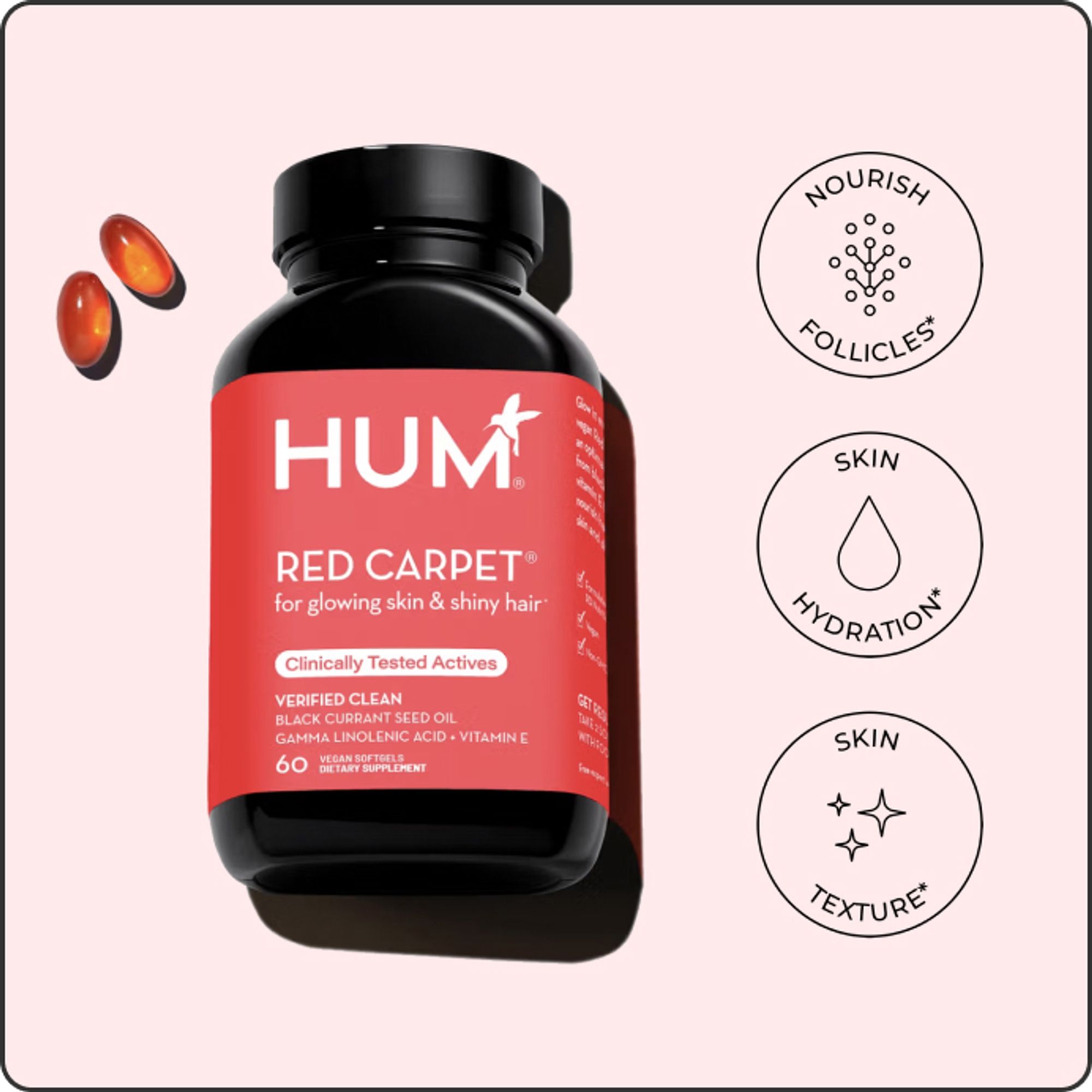Red Carpet® and Hair Sweet Hair™ both support hair health but in different ways. Red Carpet® helps support hair follicle health with hydrating and fatty acids ALA and GLA. Hair Sweet Hair™ is an all-encompassing hair gummy for stronger, healthier hair. We suggest checking out our hair vitamin guide to find out which supplement is right for you or emailing your personal HUM RD Nutritionist!
